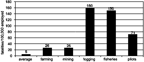 Statistics from the USA for 1998 and 1999 illustrate that forest workers employed in harvesting had the highest fatality rate (Figure 1). The high fatality rates in the USA are still much lower than in other countries, particularly in the tropics (Figure 2). In the absence of safety regulations and training, accident rates tend to be several times higher than in industrialized countries whether work is performed manually or with machines.