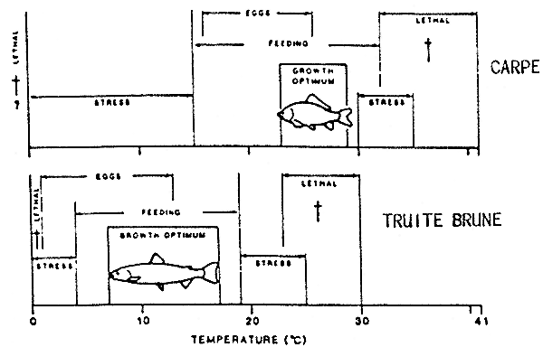 Quand on travaille avec des animaux poïchylothermes (ectothermes) comme les poissons, le seuil de la température optimale (Annexe 1), qui peut varier en fonction des espèces, doit être respecté. La température adaptée à l'élevage sera la plus élevée à l'intérieur du seuil optimal afin de maintenir la meilleure vitesse de croissance.