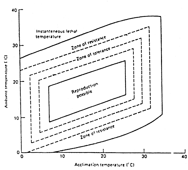 Des effets négatifs sur le métabolisme du poisson peuvent être provoqués non seulement par de fausses valeurs absolues de la température, mais aussi par leurs variations (intensité et vitesse), qui dépendent de la température dans laquelle les poissons sont acclimatés (Annexe 2). Ces effets négatifs sont plus accentués quand la différence est éloignée du seuil optimal.