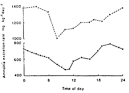 La présence d'ammoniaque dans une structure d'élevage est principalement due au catabolisme des protéines animales. La quantité est mesurée en “ammoniaque totale” qui comprend l'ammoniaque sous ses deux formes, ionisée (NH4 - N) et non ionisée (NH3 - N). La dernière forme est la plus toxique. Elle est largement diffusée à travers la membrane branchiale (particulièrement dans l'eau douce) et ses concentrations élevées paraîssent inhiber l'excrétion de l'organisme, d'où son accumulation de plus en plus importante dans le sang.