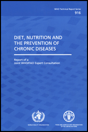 This report of a Joint WHO/FAO Expert Consultation reviews the evidence on the effects of diet and nutrition on chronic diseases and makes recommendations for public health policies and strategies that encompass societal, behavioural and ecological dimensions. Although the primary aim of the Consultation was to set targets related to diet and nutrition, the importance of physical activity was also emphasized.
