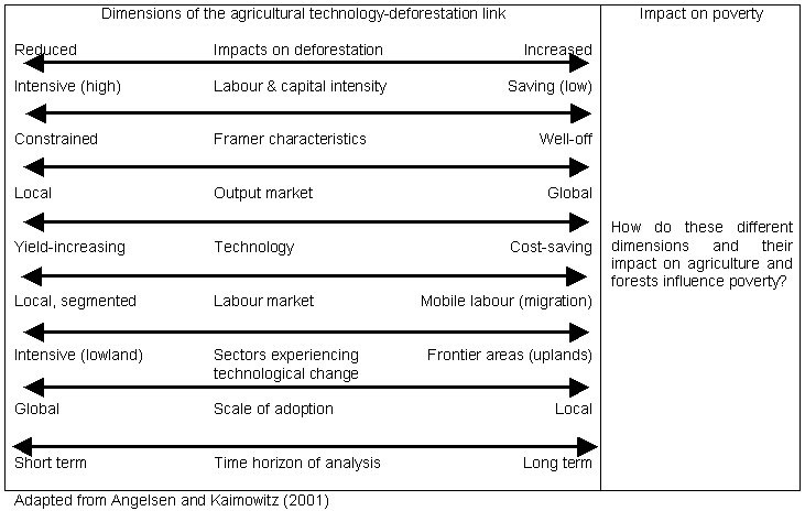 Figure 2: Important dimensions in the agricultural technology changes- deforestation links and deforestation