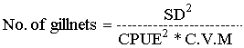 A C.V.M. of 0.10 meant that differences between two sampling occasions of 50% in CPUE would be statistically significant at the 95% level, whereas a C.V.M. of 0.05 would allow changes of the CPUE of 20% to be detected.