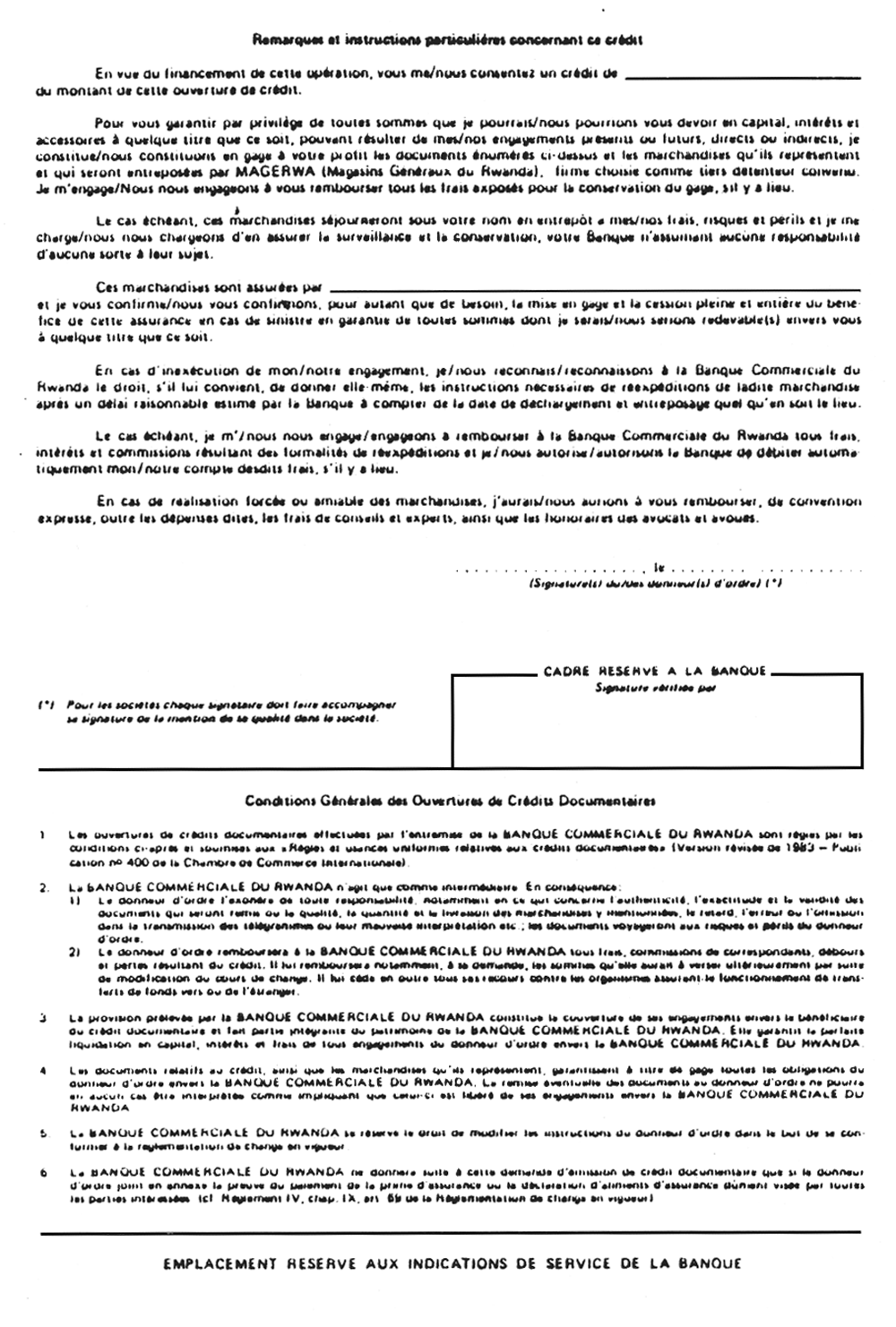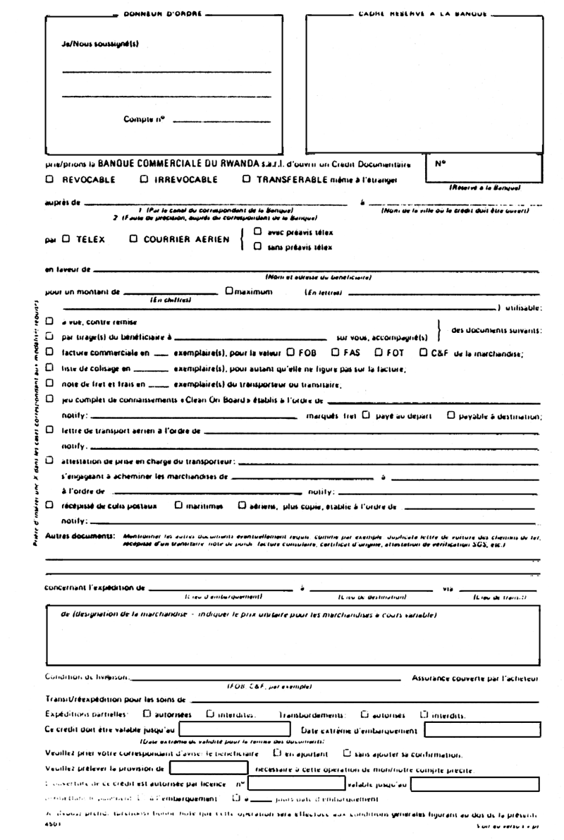 DEMANDE D'OUVERTURE D'UN CREDIT DOCUMENTAIRE