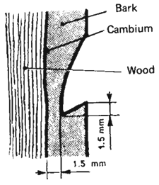 Make the cut as far as 1.5 millimetres from the cambium.