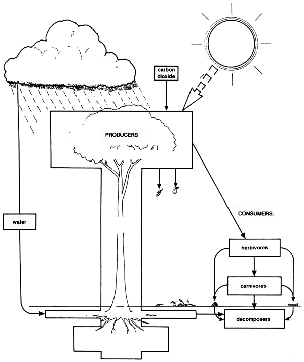 - The organic matter in 3 b and c supports all the consumers, including the: