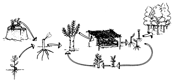 They provide a valuable source of juvenile shoots to take as cuttings, especially useful when starting clones from selected trees (A 3, A 11–12).