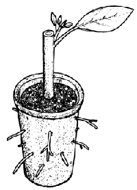 Narrow, deep containers are preferable, but larger cuttings may need somewhat wider pots. Top diameters of 2 – 6 cm, and lengths of 10 – 20 cm are suitable, as they don't take up too much space, and the rooted cuttings can easily be potted on into standard polythene pots (A 53), or planted directly into the ground.
