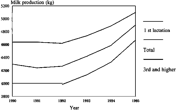Figure 1. Milk recording test of B+ W cows in the period 1990- 1995