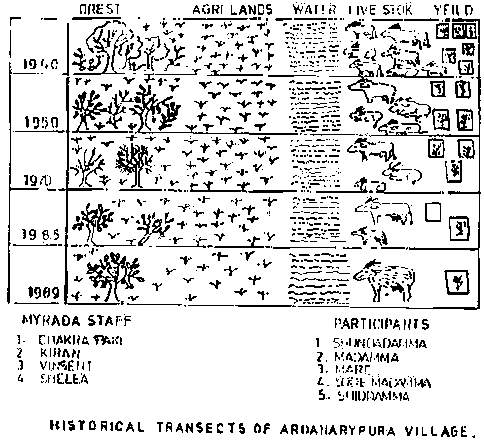 This is a very important tool for development functionaries and government officials who have to interact directly with the community. For e.g. the Janmabhoomi programme in Andhra Pradesh (see Part I) requires officials and functionaries to meet people in their own habitat as against the earlier practice of people visiting officials at their work place. This also facilitates the use of participatory tools learnt in earlier training sessions and can be used by the trainees to build up case studies of real life situations for discussion in later sessions.