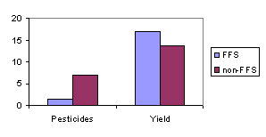 - Differences in background and characteristics between FFS farmers, exposed farmers and non-FFS farmers had not been assessed. However, prior to training, FFS candidates had more knowledge about pests and had higher insecticide costs than non-FFS farmers, which indicates dissimilarity to some extent.