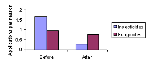 Figure A-16. Seasonal applications of insecticides and fungicides before and after training.