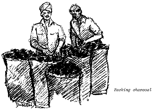 The winter months are considered to be the Ideal season for cutting trees and making charcoal. In the 1985 harvest season, the cooperative hired Kachachi labour (migrants from Cutch district) to make charcoal from the timber obtained from a 6 acre plot. The leader of the group of ten to twelve labourers was given a contract for production of charcoal at the rate of Rs. 11 for 20 kg.