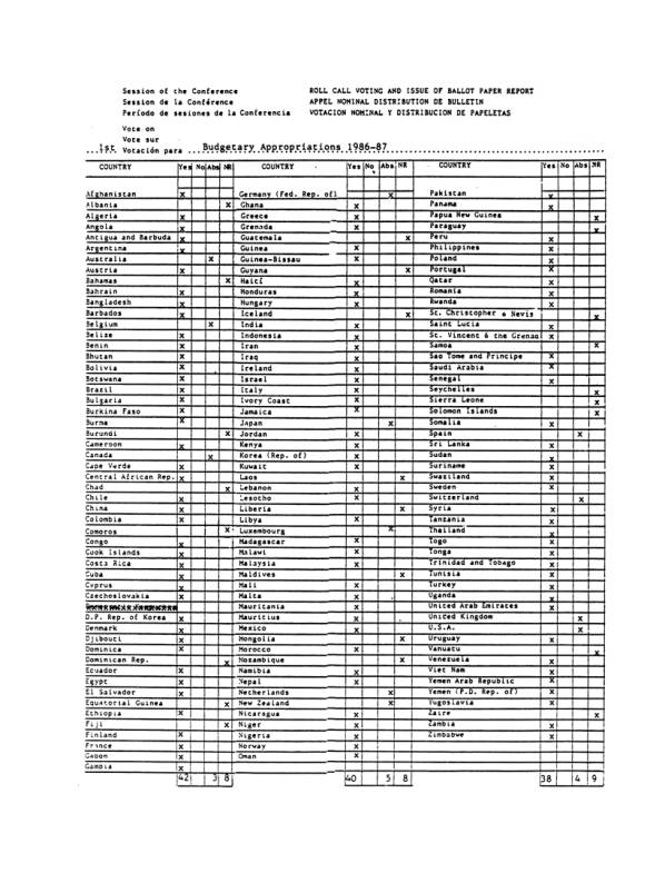 The reasons for our position have been clearly ennunciated in both the Plenary Sessions and in Commission II of this Conference and they require no further elaboration here. We are joined by other Members in abstaining from the vote on the budget in the hope that it will provide both a signal and encouragement for future budgetary restraints and even greater focus on the efficiency and effectiveness of the activities of this Organization in the future.