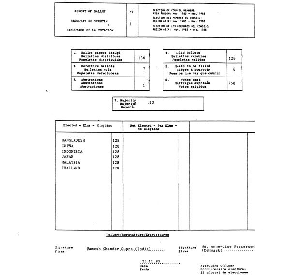Les deux scrutins que je viens d’annoncer pour départager les candidats qui n’ont pas été élus dans leur région respective, à savoir, la Yougoslavie et l’Espagne pour la région Europe, le Nicaragua et le Panama pour la région Amérique latine,vont done avoir lieu maintenant.