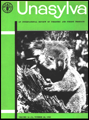 Unasylva - Started in 1947 by MARCEL LELOUP, first Director of the Forestry and Forest Products Division (present Director, EGON GLESINGER), this quarterly publication is intended to cover a range of interests which is as wide as that of the Division whose work it mirrors. Signed articles express the opinions of the authors and do not necessarily represent the views of the Organization. All material published in Unasylva may be freely reprinted but acknowledgment is requested, together with a copy of the publication which contains the reprint. Editor: LESLIE J. VERNELL.
