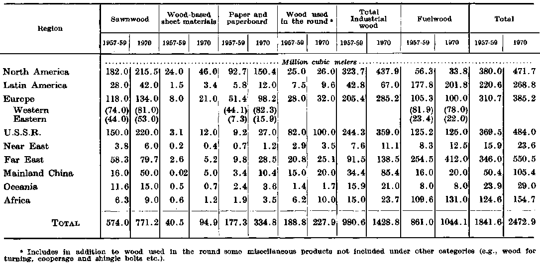 THE previous installment set out the regional pattern of consumption in 1957/9 and estimated requirements in 1970 for five broad categories of forest products. These figures are aggregated in Annex Table M, and Table 5 below gives a summary of that Annex Table.