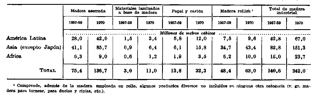 En esta sección procederemos: (a) a examinar las carácterísticas estructurales de la demanda de productos forestales, su papel en la economía mundial y la interdependencia entre la industria forestal y otros sectores; (b) a ilustrar la situación actual de la produc ción, el consumo y el comercio de productos forestales en los dos grandes bloques3 en que el mundo puede dividirse hoy: zonas desarrolladas (Europa, América del Norte, U.R.S.S., Oceanía y el Japón), y zonas menos desarrolladas (Africa, América Latina, resto de Asia); (c) a analizar las características dinámicas de la demanda de productos forestales a fin de estimar sus perspectivas en las zonas menos desarrolladas; (d) a extraer algunas conclusiones relativas a la medida en que las necesidades futuras deben satisfacerse con la producción local en las zonas subdesarrolladas.