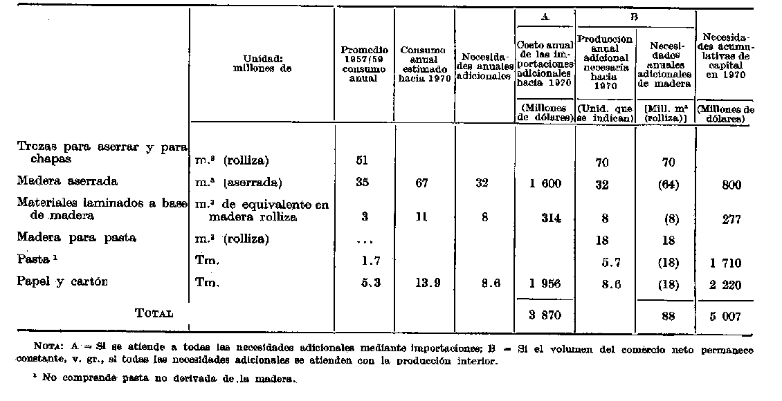 En las secciones siguientes se tratará de aportar algunos de los datos y elementos de juicio antes enumerados por lo que se refiere a las industrias forestales. Empezaremos por una evaluación de las condiciones actuales y futuras de la demanda de productos de las industrias forestales, por constituir el marco esencial de los problemas de que nos ocupamos.