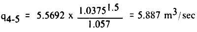 | q3–4 | = 5.5692 × 1.22751.5 = 7.574 m3/sec |
