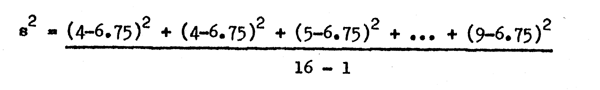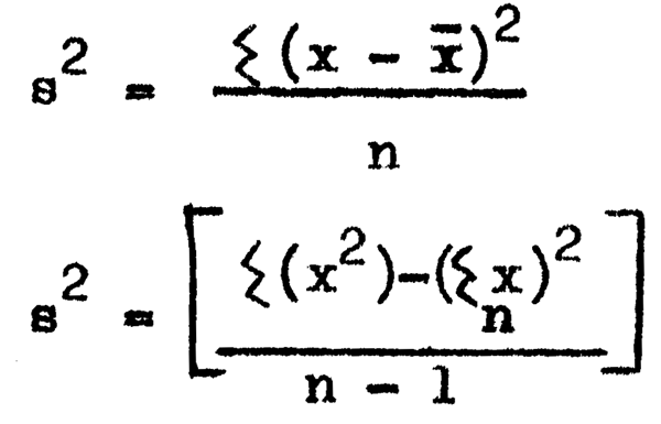 The variance, is defined as the sum of the squares of the deviations of the observations from this mean divided by one less than the total number of observations and it is usually written s². It is written ó² (pronounced sigma squared) when it is the variance of a population and not of a sample. In statistical shorthand