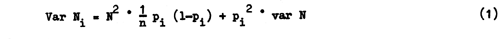 La variance diminue de 1/n quand plus de poissons (= n) ont leur âge déterminé, mais elle augmente quand le nombre de groupes d'âge dans chaque strate de longueur (pi) augmente. S'il y avait seulement un simple groupe d'âge dans un strate pi = l, (l-pi) = 0 et la variance serait nulle.