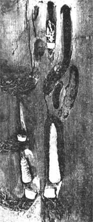 Tunnels creusés dans le bois de sel par Hoplocerambyx spinicornis