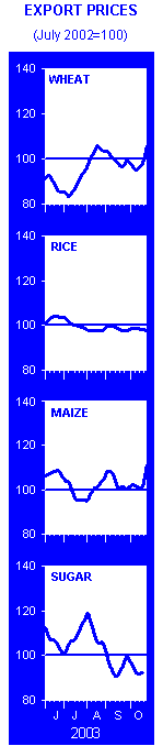 International prices for dairy products rose between August and October 2003, after being stable during the first half of the year. For the remainder of 2003, prices are expected to show a further moderate increase.