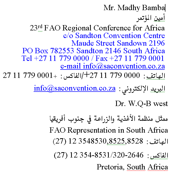 الهاتف: (27)12 3197290/ الفاكس ( 27) 12 319 7939 |