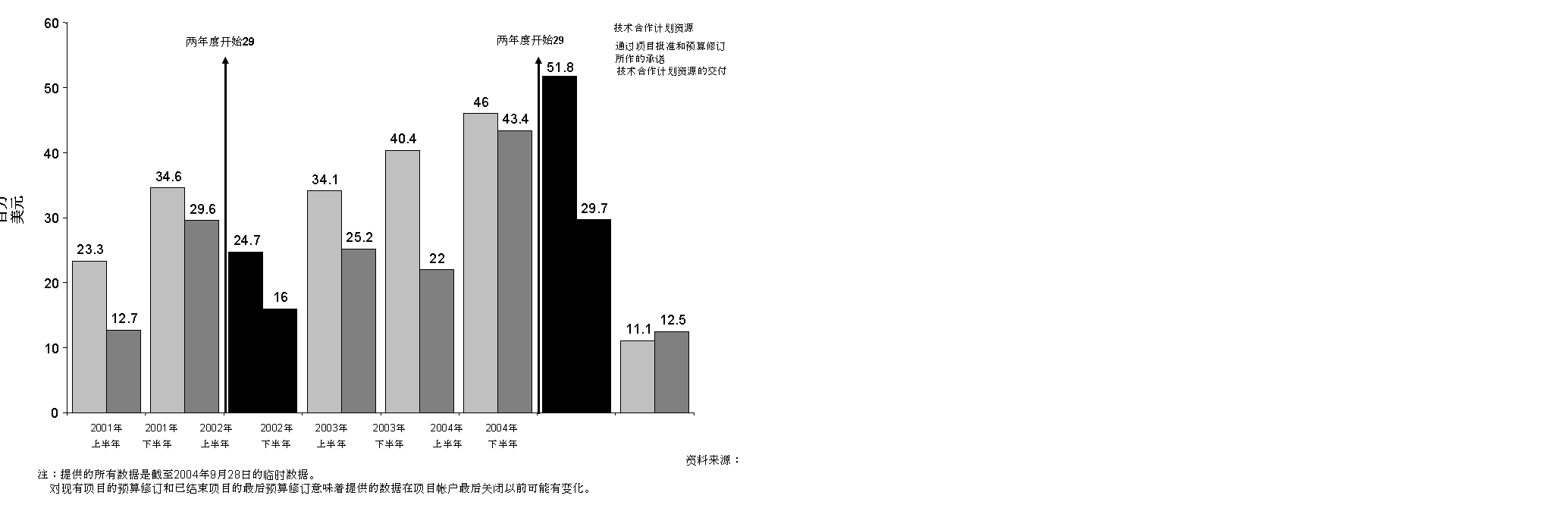 9. 按照大会决议6/2001用于一次性支出拖欠款交付的分配方面,在从2003年结转的4140万美元中,2004年头六个月已经支出540万美元,尚有3600万美元的余额可供本两年度剩余时间使用。