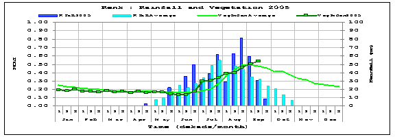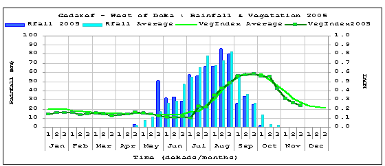 In northern Sudan, the cropped areas in all three sectors-irrigated, mechanised rainfed, and traditional-increased significantly in 2005, and yields were generally better than in 2004. Aggregate production across the three sectors is considerably better than the previous year’s poor performance and is above the long-term average. However, insecurity in Darfur, though less pronounced during the planting season, continues to seriously hamper harvest in that region.