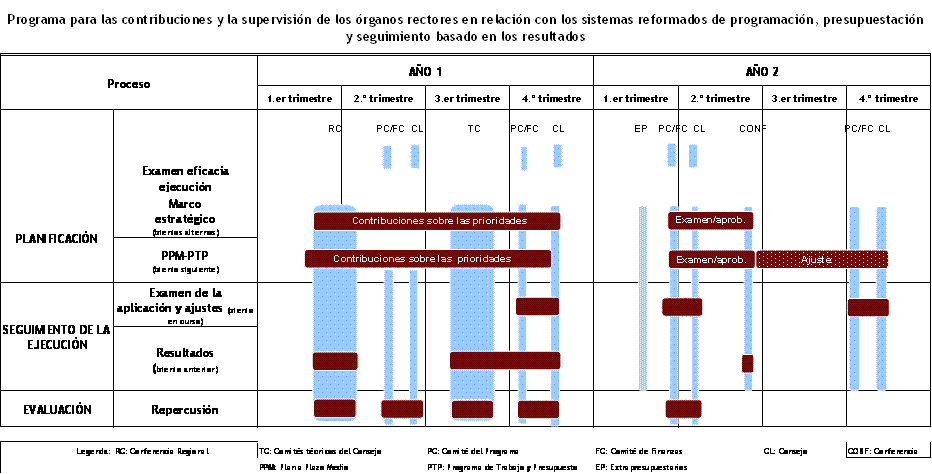 Cabe señalar que actualmente el programa relativo a los FAOR y el PCT no están plenamente integrados en el marco basado en resultados. Dado que el trabajo en relación con este asunto aun no se ha ultimado, la Administración y los órganos rectores pertinentes seguirán considerándolo durante el bienio 2010-11 con miras a aplicarlo en 2012 en la medida posible.