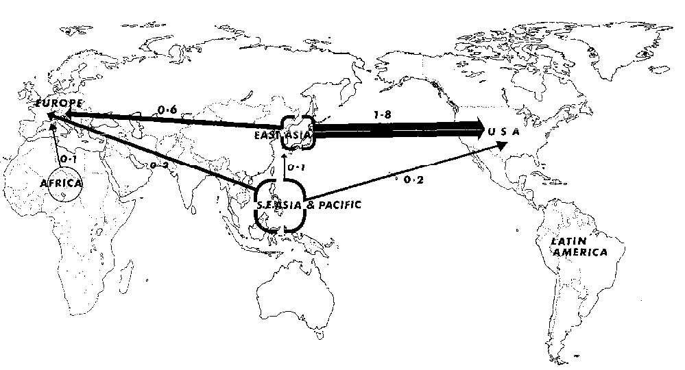 Netherlands. There is also a substantial flow from Malaysia to Australia that is not indicated on the map.
