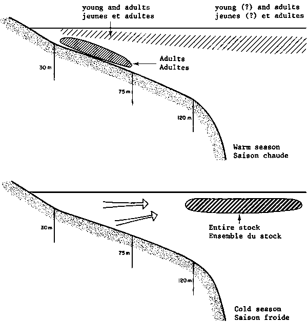 Figure 7 Hypothesis concerning the seasonal distribution of the trigger fish (Balistes capriscus) - Hypothèse concernant le schéma de répartition saisonnière des balistes (Balistes capriscus)
