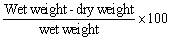 and W = moisture content as a percent of the wet weight basis