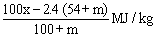 where x = (high) heat value of wood » 20.0 MJ/kg.