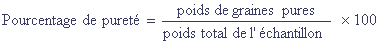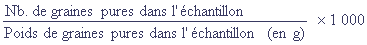 Le nombre de graines pures par kilogramme peut être aisément calculé par la formule suivante: