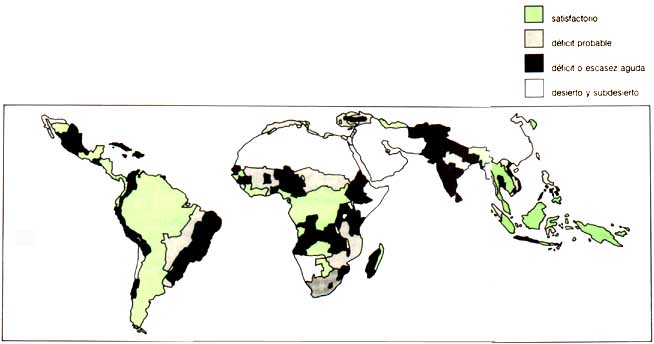 En 1981, la Organización de las Naciones Unidas para la Agricultura y la Alimentación (FAO) publicó un mapa de la situación en materia de leña en los países en desarrollo, donde se mostraba que de los 2 000 millones de personas que dependían de la madera, 96 millones ya no disponían de la energía mínima necesaria para cocinar y calentarse. La carestía de leña afectaba a otros 1 052 millones de personas, que sólo podían atender a sus necesidades consumiendo las reservas de madera. De este total de 1 148 millones de personas, más del 64 por ciento vivían en Asia. La escasez más aguda se registraba en las regiones áridas de Africa, en las zonas montañosas de Asia - en particular el Himalaya - y en el altiplano andino en América del Sur. Para cubrir el déficit hacían falta unos 400 millones de m3 de leña.
