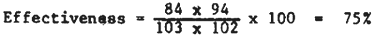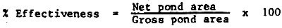 The pond effectiveness is the ratio of water area for production to gross area of land required for a pond, or
