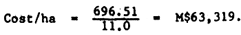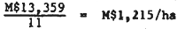 Land clearing, M$600/acre (M$1,500/ha) for machine clearing;