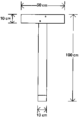 Boning rods are T-shaped and made of wood. Their height is normally 100 cm and the cross-lath is 50 cm x 10 cm. The bottom part is sometimes reinforced with metal (see Fig. 34).