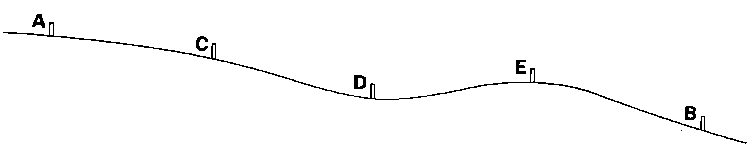 In between points A and B, pegs are placed at intervals slightly less than 10 metres (see pegs C, D and E in Fig. 46a).