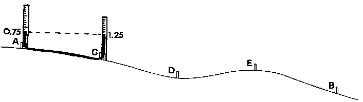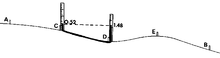 The two Bench Marks A and B and the pegs C and D all have the same elevation. Line ACDB is horizontal (Fig. 35f).