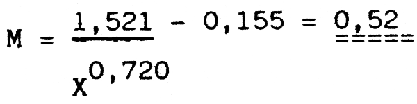 log M = - 0,2107 - 0,0824 log W∞ + 0,6757 log K + 0,4627 log T M = 0,45
