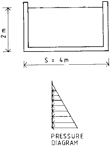 Note the design of the wall is complex if it consists of a plate of uniform thickness, but if the wall is thought of as consisting of a.number of vertical members cantilevered from the floor, an approach similar to that taken in the wall retaining soil can be used.