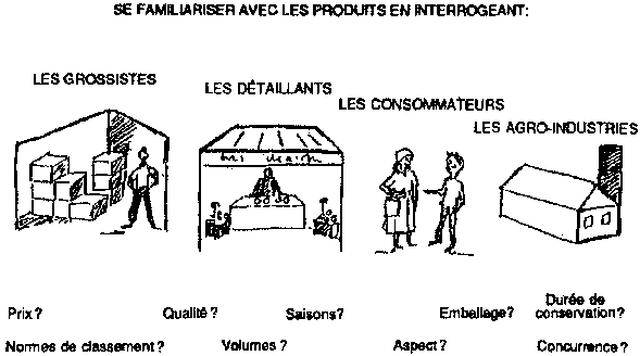 L'agent de vulgarisation devra se familiariser avec les problèmes et les débouchés (ou principaux points de vente) de la zone. On trouvera ci-après une liste des questions auxquelles il devra répondre.