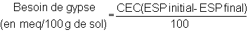 Pour évaluer le besoin damendement (sil sagit damendements chimiques visant à supprimer une certaine quantité de sodium, lévaluateur peut, dans un premier temps, calculer les besoins théoriques en gypse: