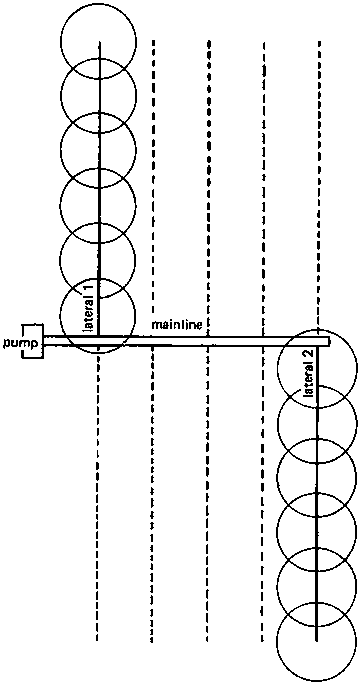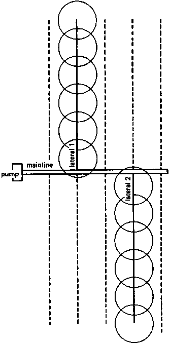 Figure 54 Hand-moved sprinkler system using two laterals (Laterals 1 and 2 in position 1)