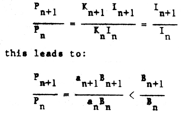 Where Kn is the overall food conversion efficiency of the predator, and In is the rate of food intake of the predator population. Of course each prey item has a specific conversion coefficient which will need to be estimated with this approach, entailing a considerable amount of experimental work. Nonetheless, a great deal of this work has already been done, so that the variable an (the food consumption rate per unit biomass of predator n), has been documented for a wide variety of species (see e.g., Conover, 1978), and we note here, what will be amplified later, namely that In is defined by: