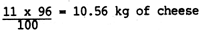 The above example shows that 100 litres of milk with a fat content of 40 g per litre will supply 96 litres of milk with a fat content of 26 g per litre, for cheese-making.